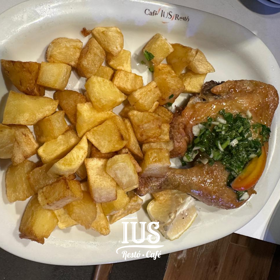 Ensalada IUS: rúcula, arroz, tomate, zanahoria, pollo y parmesano
